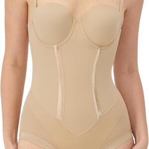 SO MANY WAYS TO WEAR IT This ultra-firm all-in-one convertible body shaper is just what you need for everything from slipping into a clingy party dress to everyday smoothing and support. It targets your tummy, waist, and rear with strategic zones and shapely princess seams that smooth, sculpt, and control bulges - so you'll look your best under form-fitting fashions. Even better, with its adjustable straps, you can customize your firm-control body briefer for strapless, racerback, one-shoulder, or traditional wear so it works with so many necklines in your closet. BYE-BYE BULGE - The sleek fabric smooths and sculpts to control bumps and bulges with strategic, built-in support zones. KEEP YOUR COOL - Cool Comfort fabric wicks away moisture to keep you cool and comfortable all day. ANTI-STATIC FABRIC - Helps make sure clothes slide on with ease and won't cling. CONVERTIBLE STRAPS - Wear strapless, crisscross, one-shoulder, or traditional to work with every kind of neckline. WEDDING SHAPEWEAR - Ultra-firm-control body shaper smooths and shapes your tummy, waist, and rear for a sleek look under a wedding gown or other form-fitting dresses or skirts. ALL-DAY COMFORT & CONVENIENCE - Light yet powerful control fabric feels great hour after hour, with a hook-and-eye cotton-lined gusset for convenience. BUILT-IN BRA IN YOUR CUP SIZE - A built-in underwire bra with custom cup technology lets you get the right fit and support: B cup has a padded lift, C cup has a lightly padded lift, an