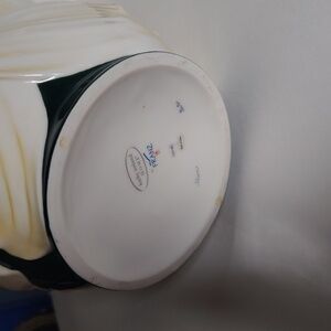 Beautiful ceramic vase featuring a floral design. The vase showcases yellow and green accents, adding a touch of elegance. small chip pictued