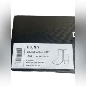 DKNY Women Corrie Ankle Booties, Oxblood Suede Size 8 Condition is new with box.