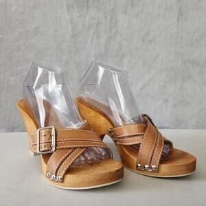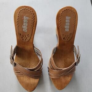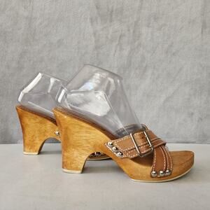 Bongo Wood Sandals Womens 8 Platform Chunky Heel Brown Leather Studs Buckle Y2K