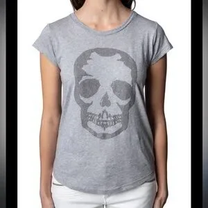 Zadig & Voltaire skinny skull tee embellished gray short sleeve size large