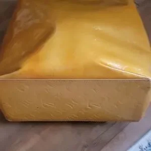 PRE OWNED IN GOOD CONDITION SERIAL CODE TH1022, HAS A SMALL INK MARK INSIDE, NOTHING TOO NOTICABLE, THE CORNERS HAS SOME WEAR; ONE SIDE MORE THAN THE OTHERS, 👀ALL PHOTOS AND VIDEO FOR WEAR, ITS NIT NEW BUT A GREAT TOTE PRE-OWNED.Elegant mustard leather tote by Louis Vuitton. Accented with brown leather handles.🥰