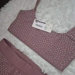 You'll totally shine at the gym or out and about in this dusty pink leggings and top set with sparkling dots. So cute.