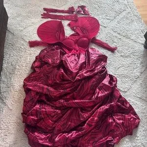 Dress (has hoop which makes it perfectly round!), red gloves and the red choker collar included.