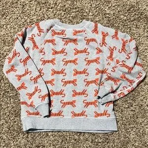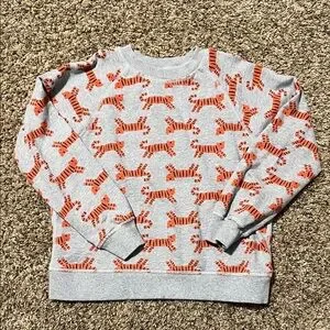 Stylish gray sweatshirt featuring an all-over orange tiger print. Perfect for casual wear. Worn once. Perfect condition.