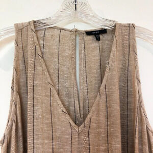 DREW Linen-Blend Tie Front V Neck Striped Jumpsuit