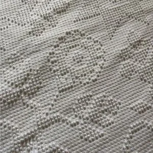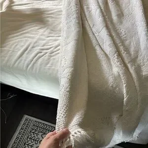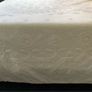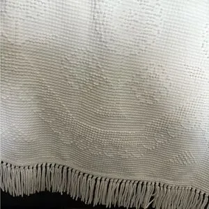 Vintage full size heavy weight bedspread by Morgan-Jones Minuet. Martha Washington with beautiful pattern and fringe. Great condition. pictures on a queen size mattress but tag says full.