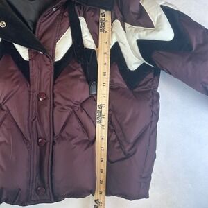 COACH Puffer Jacket Women's Winter Coat Burgundy Zigzag Sherpa Hood Cozy