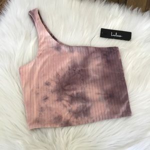 Lulus Tell My Mood Purple Tie Dye One Shoulder Cropped Tank Top Size S
