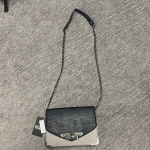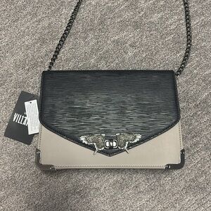 Maleficent Minimalist. Loungefly logo zipper pull. Crossbody Bag. Small crossbody bag. Crossbody chain strap with faux leather shoulder rest. Sleeping Beauty. Limited Edition only 1300 made. Interior zip pocket.