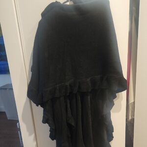 Stylish black wrap with ruffled edges. Ideal for layering.