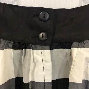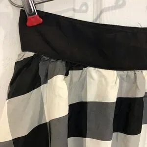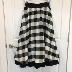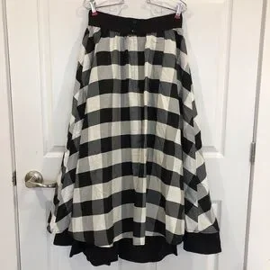 Gunne Sax vintage skirt bold black white check gingham with wide waistband. Fully lined with black crinoline type layered and ruffle that extends Beto d hem. Back zip and buttons to fasten. Pin up Cottagecore fancy