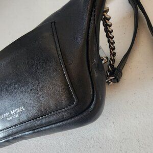 "EUC" Beautiful Smooth Lambskin Quilted Leather Belt/Waist Bag By Henri Bendel. Zip Around Closure, Back Leather Slip Pocket, Aged Silver Tone Hardware, Clean Satin Lining with 1 Leather Slip & 3 Leather Card Slots, Adjustable Leather & Chain Strap, Logo Rings & Charm, Logo/Silver Lettering on Back & Large metal HB on Front, Bag Measures approx. 5" T X 7.5" W X 2" D, Great Condition, No Wearing/Corners/Stains, Minor Markings Normal Light Use:) Rt.350.00 approx.