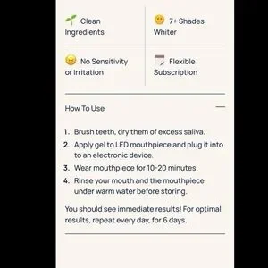 Including: Whitening Gel, Gel Applicators, LED Mouthpiece with Power Cord