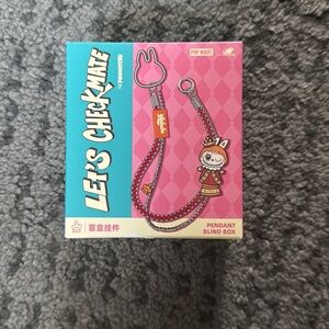 Pop Mart pendant blind box. Brand new, unopened. You have a 1/6 chance of getting any of the regular ones and 1/72 chance of getting a secret one. Can be used as a bag charm or keychain.