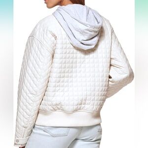 Levi's, Quilted, Faux Leather, Bomber Jacket, Hooded, Hood, Cream, Off White, Gray, Ribbed, Cuffs, Hem, Snap, Zipper, Moto, Biker, Streetwear, Casual, Outerwear, Spring, Fall, Winter, Y2K, Athleisure, Preppy, Utility Chic, Minimalist, Indie Sleeze