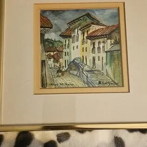 Ronda Salguaro Add a touch of elegance to your home with this charming street scene painting. The artwork is beautifully framed in gold, perfect for enhancing any room's decor. 8" x 8"