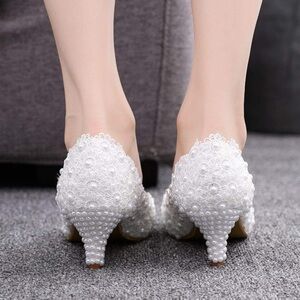 Step out in style with these elegant white lace women's shoes. Perfect for any occasion, these shoes offer a blend of comfort and sophistication.