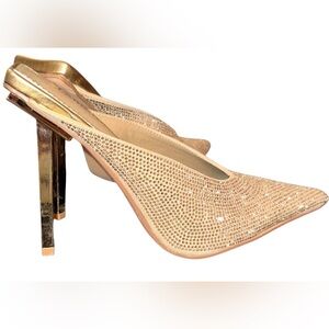 LEMONADE elegant gold pointed toe, 4”inch heel slip on gold sparkly size 8, gorgeous, 3.5 inches width. Chic gold mules with a shimmering finish. Ideal for a stylish touch. prom. Wedding party church holidays date night special occasions.