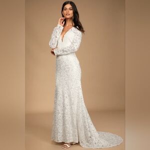 Lulus Following Your Heart White Lace Long Sleeve Maxi Dress XS Wedding Bridal NWOT. See all pictures for details. Currently SOLD OUT online.