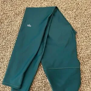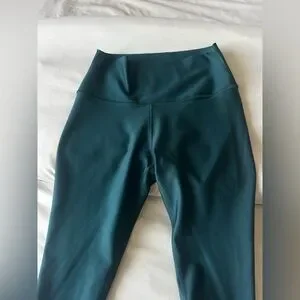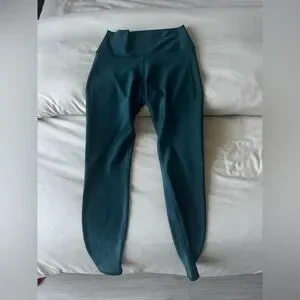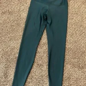 High-waisted teal leggings. Smooth and stretchy fabric. Perfect for yoga or casual wear.