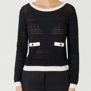 Jason Wu *NWT* Women's Viscose Blend Long Sleeve Sweater Blouse, Size: Small. Color: Black/White