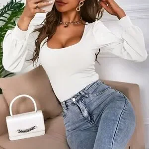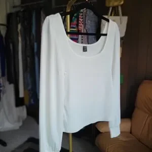 White long sleeve top with puff sleeves from Shein. Scoop neck, lightweight fabric, excellent pre-owned condition. Size Medium.