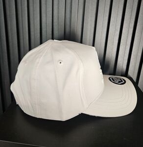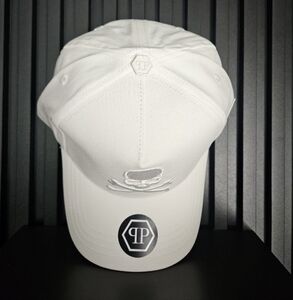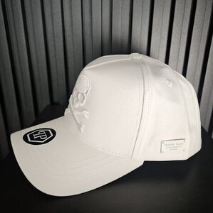 Stylish white cap featuring a skull and crossbones design. Perfect for casual wear.