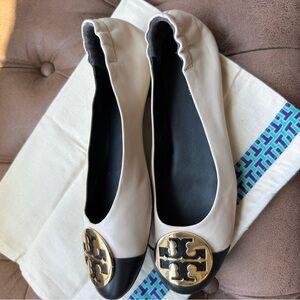 Tory Burch Black and Cream Flats with Gold Accent