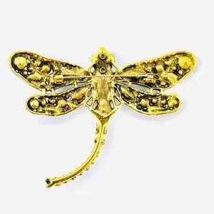 Add a touch of elegance to your outfit with this stunning dragonfly brooch. Featuring vibrant green and blue crystals, this piece is perfect for any occasion.