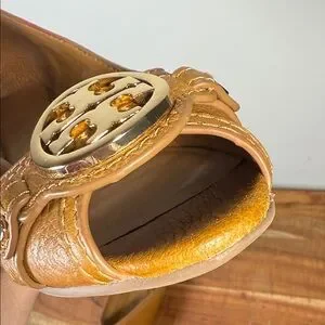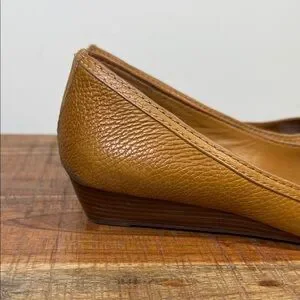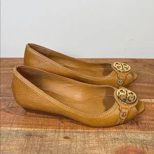 Tory Burch Brown Peep-Toe Small Wedge, Women’s 8.5