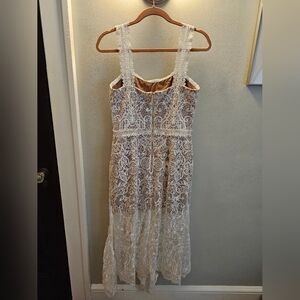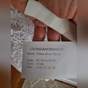 Gorgeous, head-turning Tiffany Blanc Dress by Bronx and Banco — never worn, tags still attached, and in flawless condition. This white lace beauty is the dress for bridal showers, engagement parties, rehearsal dinners, or any special event where you want to shine.