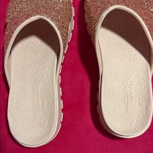 Skechers Glitter Slide Sandals - Gold and Pink Arch Fit