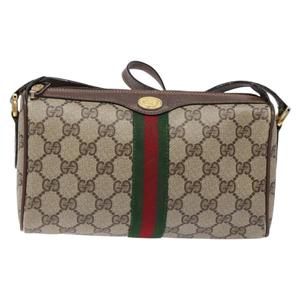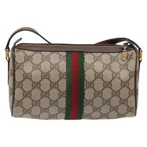GUCCI GG Supreme Web Sherry Line Bag PVC Beige Gold 89 02 018 Auth BA4016