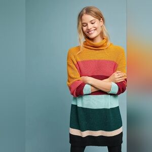 Farm Rio Anthropologie Striped Turtleneck Sweater Dress Multicolor Sz S