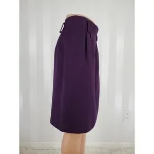 Fabulous purple straight skirt features a pleated front design and back zipper closure. It has large belt loops for your favorite belt and back venting. This skirt is fully lined. Don't miss out on this purple Casual Corner skirt.
