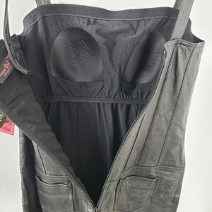 Newport News Shape FX Genuine Leather Sexy Bodycon Fitted Dress NWT. Features adjustable straps, inside shaping, in a fitted silhouette. Back zipper. Sexy and chic. Please see photos for materials and care instructions. Minor leather marks/wear, slight creasing from storage creasing, see photos. Very good condition NWT.