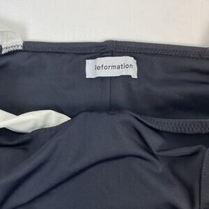 Elegant one-piece swimsuit. Features black body with white trim. Stylish and comfortable.