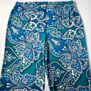 Chico’s Travelers Classic High Rise Paisley Crop Pants. Jewel tone blues and greens (teal) stretch knit pants from the popular travelers collection. Comfy, flowy wide leg Palazzo pants. Cropped Palazzo Pants with Flared Wide Leg. Casual or Semi Formal
