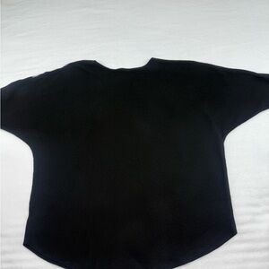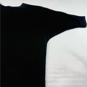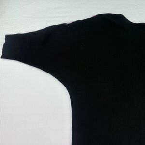 Super soft black sweater featuring vibrant pink floral embroidery on the shoulder. Batwing sleeves give flattering comfort and style.