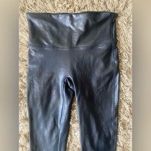 SPANX faux leather leggings size medium. Good used condition aside from a few pulls by the inside ankle on one leg (pictured).