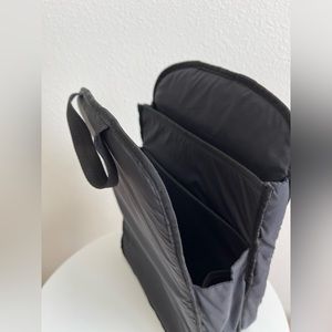 Stylish Lesportsac backpack. Features pink body with gray straps. Multiple compartments for organization. Durable and versatile.