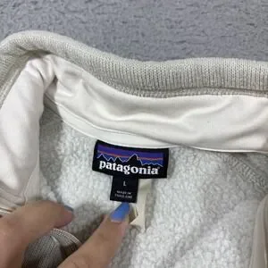 Patagonia Better Sweater Womens Large 1/4 Zip Pullover Off White Fleece Outdoors