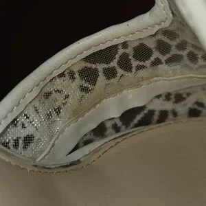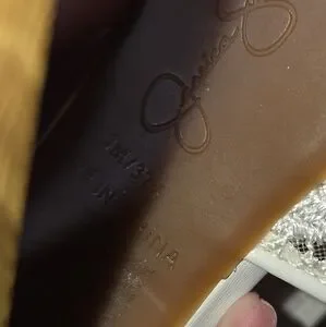 Unfortunately, I spilled a little coffee on one shoe. I was able to clean majority of it from the top & it's hardly noticeable, however you can see the discoloration inside. Not visible when shoe is on. Heels have minor scuffing - hardly noticeable when worn.