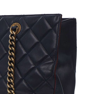 This tote features a quilted leather body, chain link straps with leather guards, a top fold in flap with twist lock closure, and interior zip and slip pockets. It carries an AB condition rating.