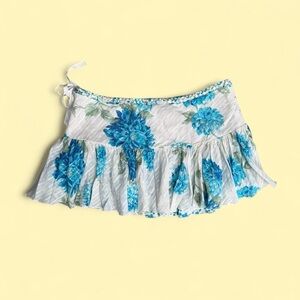 Vintage Y2K Abercrombie & Fitch silk micro skirt floral light blue and white