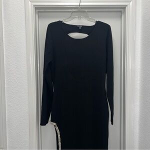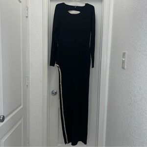 Fashion Nova Black Long Sleeve Maxi Dress w/ Rhinestone Slit XL