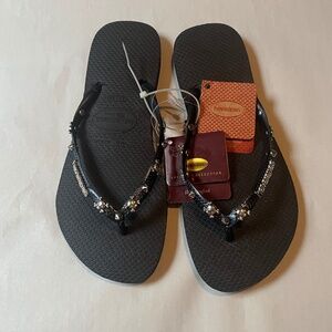 Havaianas Skull Crossbones Slim Hardware Studded Spikes Black Flip flops Slides