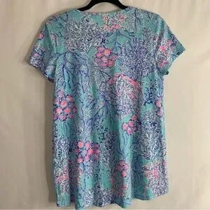 NWT Lilly Pulitzer Etta V-Neck Tee Blue Ibiza “Now You Sea Me”, Size S