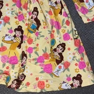 Excellent condition. Smoke free pet free home. No stains or snags. Ended up sizing up in this print so selling this one! Adorable Disney dress featuring Belle. Bright yellow with floral accents. Perfect for casual wear. Ruffle detail at shoulders. Has pockets! Soft and stretchy bamboo viscose material
